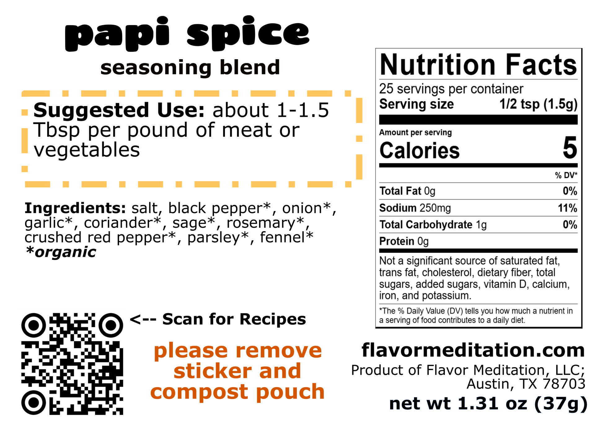 pronounced "pap-ee"; this zesty, herbaceous, italian-inspired blend will add a savory lift to your kitchen adventures! One of flavor medi's essentials, we love this seasoning on any meat, every vegetable we can think of, and it also makes a kick-ass Italian vinaigrette
