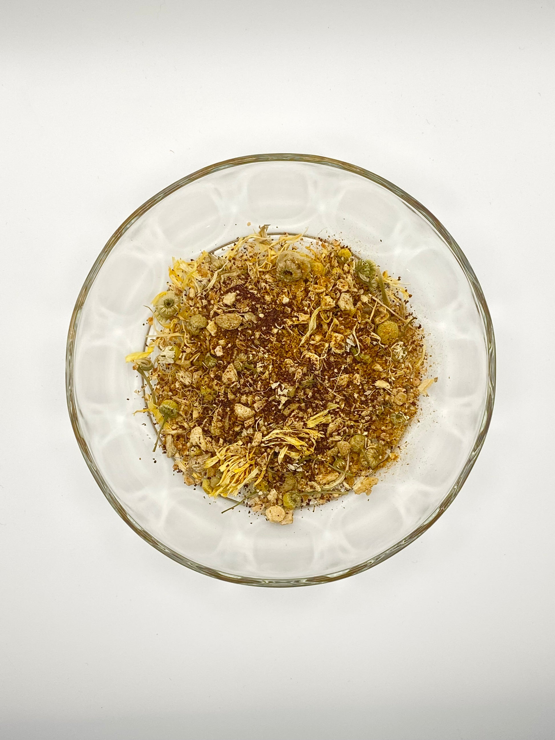 Ingredients: orange peel*, ginger*, sumac*, chamomile*, calendula*, turmeric*