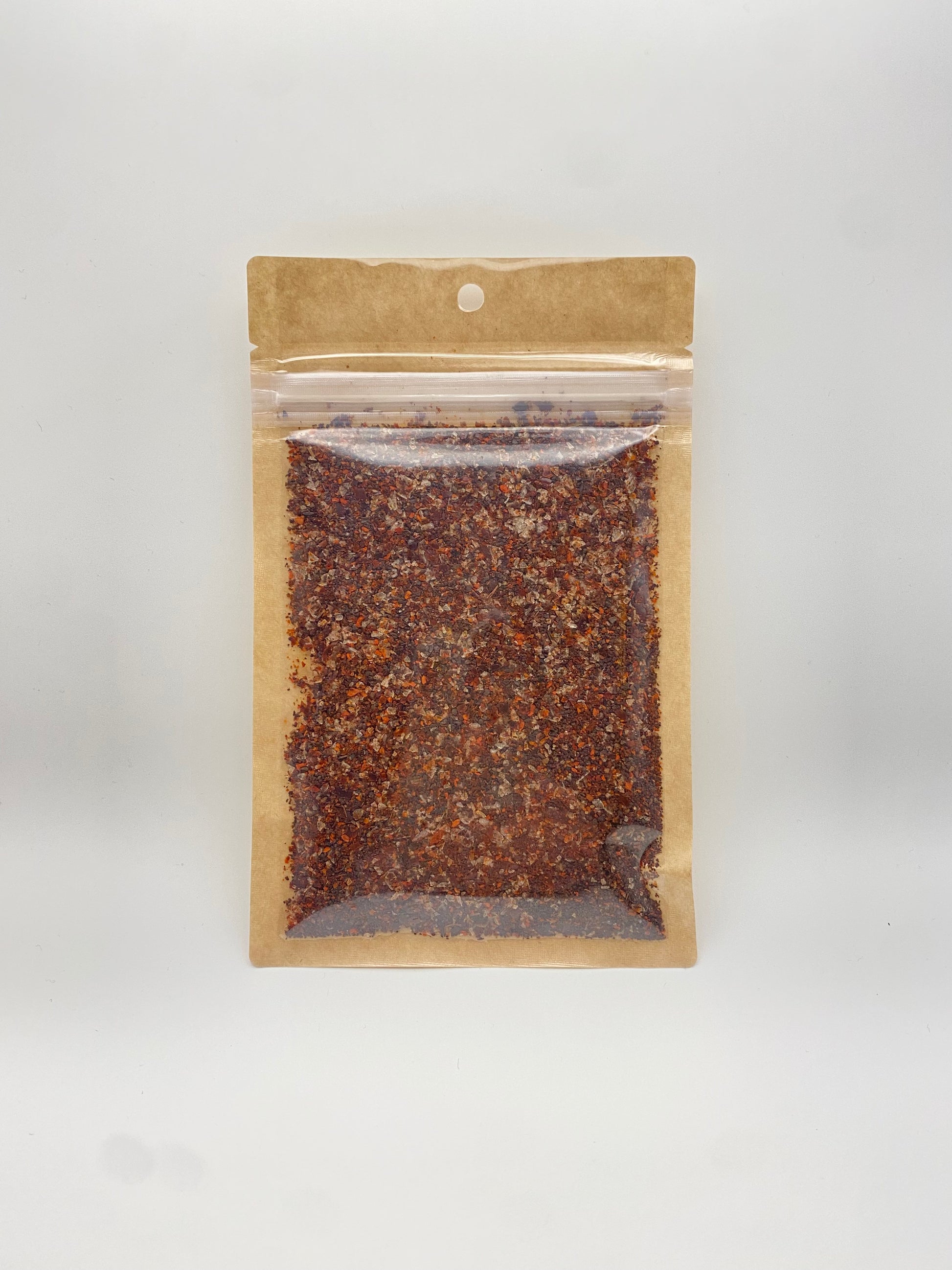 It's salty, it's bright, it's tart. It's a hint smokey, a bit peppery, and just a touch spicy. A complementary flavor (but slightly different) on everything from mango to eggs to popcorn, sugo salt will keep you coming back! This finishing and seasoning salt is great on its own, or blended with other flavors. Also amazing to add some zing on the rim of a drink!